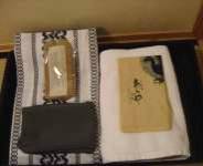 寝室には浴衣2枚、半纏、丁子の香りのする足袋型靴下、バスタオルが用意されている。寝室奥の書