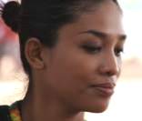 マヌカン島で楽器演奏中の美女          サビ島ではダイビング客、海水浴客、大トカゲで溢れ返っていた