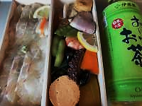 昼 新幹線車内にて 「和久傳」のお弁当3780円、お茶