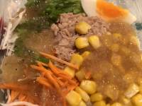 昼 乃木坂「乃木坂倶楽部」今日のランチ(つみれ入り冷たいスープと野菜たっぷり酢飯、ほうれ