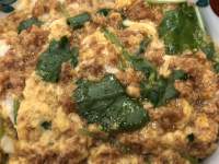 朝 家食 半熟卵と蒸し鶏のサラダ、山形「佐徳」の豆浅漬け、玉葱とじゃが芋と豆腐の味噌雑炊、