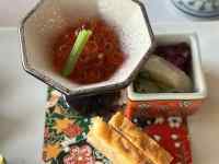 う順番に料理を持って来てね」と夢子コースを考えて注文する。ピータンと野菜甘酢漬けがなかなかで、