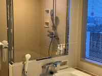 予約する時は忘れていたのだが、このホテルの多くの部屋のバスルームはカラス戸の仕切りがあって、私のよ