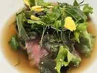 夜 赤湯・山形座龍波 オステリア「センチュリータ」Menu di oggi(置賜タルト、鮎とミズ蕎麦粉クレープ包み、