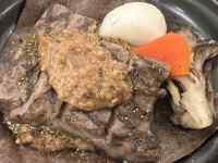 夜 明石町「ダイニング」A定食(牛肉の朴葉味噌焼き、野菜の煮物、トマトとパプリカの甘酢漬け、おぼ