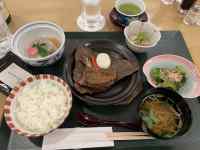 夜 明石町「ダイニング」A定食(牛肉の朴葉焼き、里芋の海老そぼろ餡、ブロッコリーのお浸し、なま