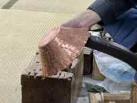 銅を叩きながら立体的な器を作り上げる技術の素晴らしさ!明るい作業所に女性も多い職人