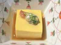 朝 明石町「ダイニング」A定食(湯豆腐、ししゃも焼き物、うぐいす豆、ご飯、ニラ玉汁、飲むヨーグル
